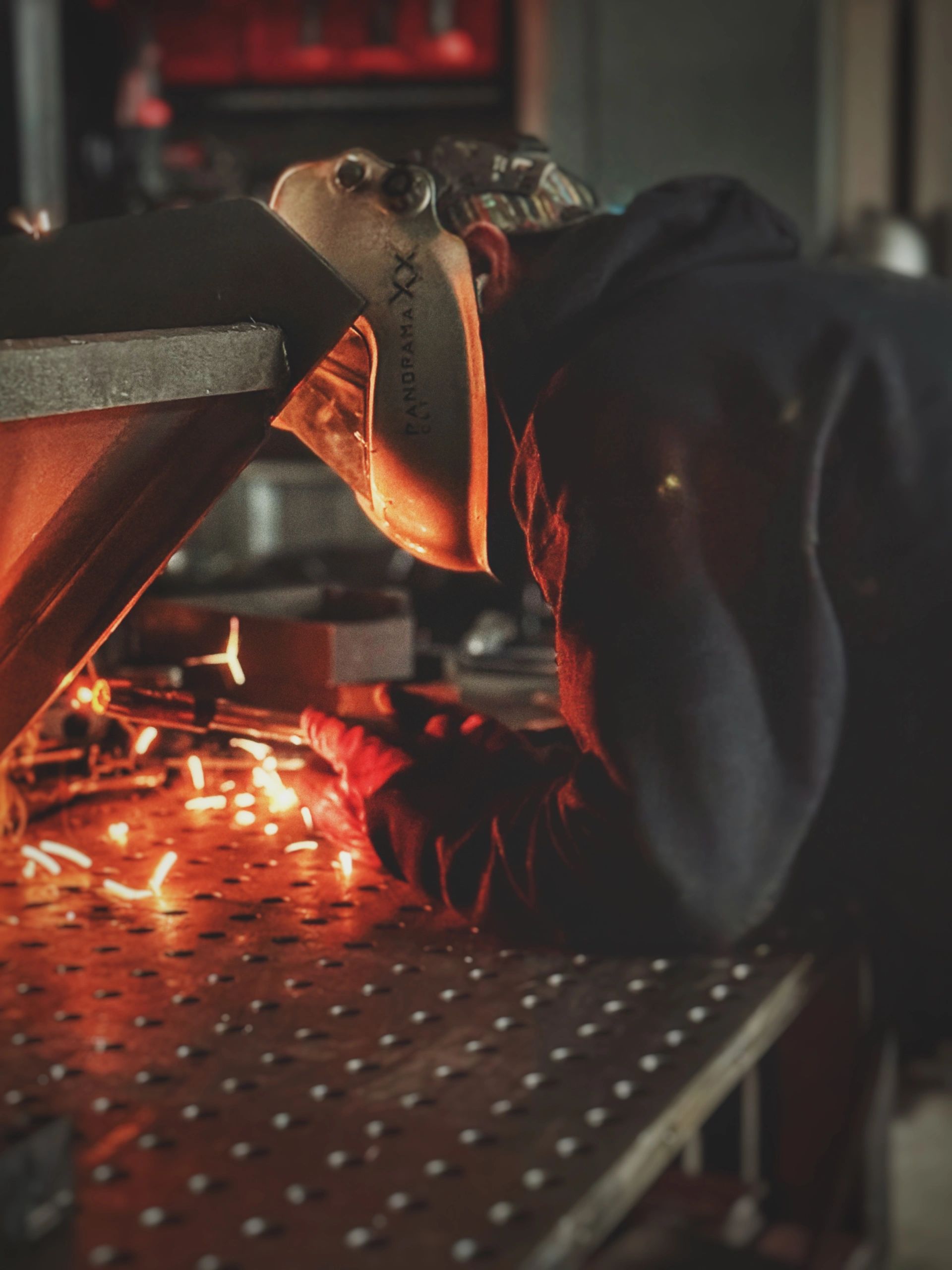 1. Once the design is finalized, fabrication begins. The drawing is often converted into machine instructions (for CNC routers, laser cutters, or plasma cutters) to cut, shape, or form the metal into the desired part. 2. Assembly and Welding; in some cases, multiple pieces need to be fabricated and then assembled. This step could include welding, bolting, or riveting parts together based on the design.